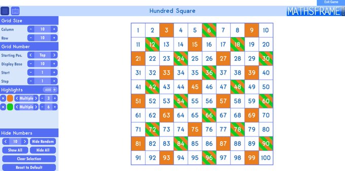 Lo ha realizzato Ted Burch di MathsFrame e può essere usato alla LIM per evidenziare multipli, numeri primi, decimali e molto altro ancora.