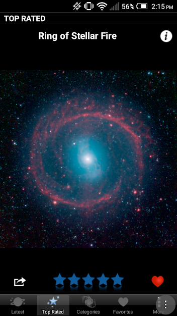 E' un'app che archivia file multimediali provenienti dallo spazio. E' totalmente gratuito e vi permette di condividere immagini e video sui social network, direttamente dall'applicazione. Space Images vi regala foto ad alta risoluzione, straordinari video di stelle e pianeti e offre una vista unica del cielo attraverso centinaia di immagini provenienti da varie sonde spaziali.